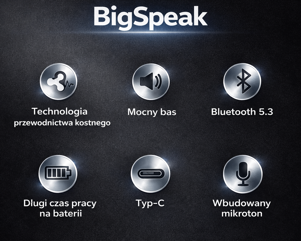 BigSpeak wykorzystuje technologię przewodnictwa wibracyjnego, dzięki której zamienia powierzchnie (np. stół, szybę, metalową szafkę) w potężne źródło dźwięku. Im większa powierzchnia, tym mocniejszy bas!